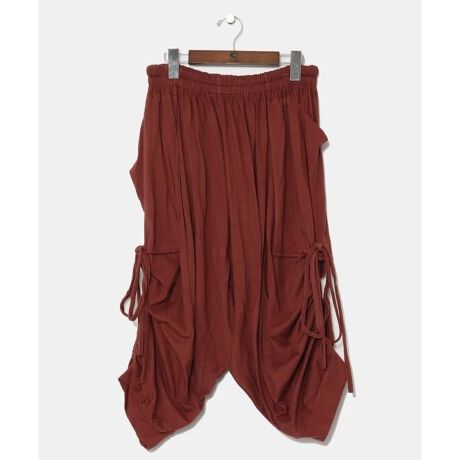 伸縮性のあるカットソー素材で、肌触り・はき心地ともに抜群な変形メンズサルエルパンツ。サイドストリングを絞ってシルエットの変化が楽しめるシンプルながらユニークなデザインは、唯一無二な個性的なスタイリングを実現します。