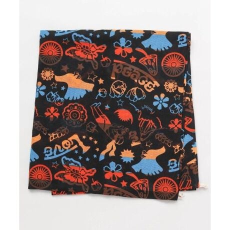 [型番:ISAP33A1-2024]裏に6つのループ付きでベッドカバーやタープクロスなどマルチに使える。 LOVE&PEACEがテーマ。綿産業を支えたガンジーや草花や山をモチーフにした。