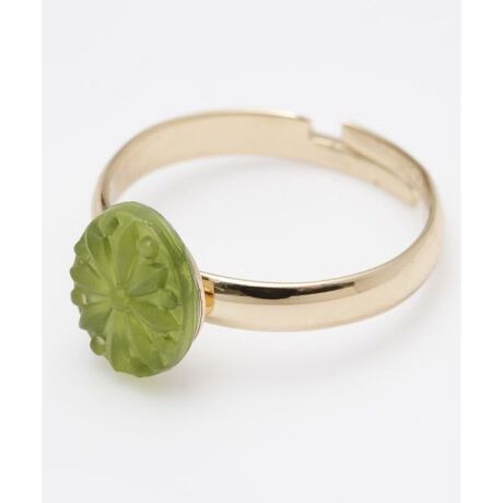 [型番:LSJZ3203-2024]シャーベットカラーのガラスにお花の模様が立体的に浮かび上がるリング。ドイツ製のパーツを使用しました。小ぶりな印象で、どんなシーンでも身につけられます。