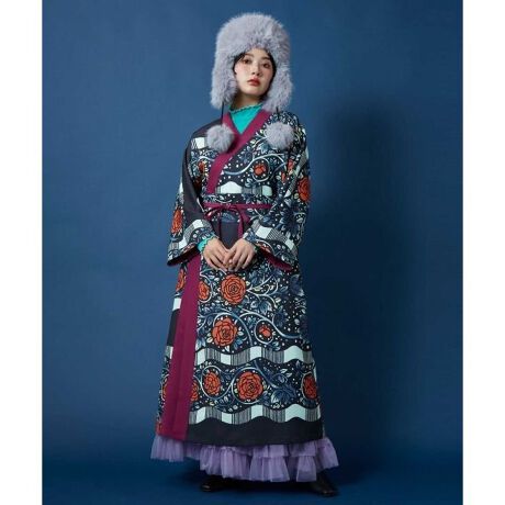 【倭物やカヤ×重宗玉緒】まるで着物のようなシルエットのワンピース。新柄に「薔薇」が登場しました。●着物・オブジェ作家「重宗玉緒」メインテーマ「メメントモリ(死を想え)」に沿った、絵画のような着物や帯・オブジェを制作する他、作家自身が欲しいと思うファッションとして先鋭的なアイテムを、完全オリジナル、他にはない物作りにこだわって制作。英国立博物館に作品が永年収蔵され、海外でも展示会やビジュアル撮影を行うなど幅広く活動している。