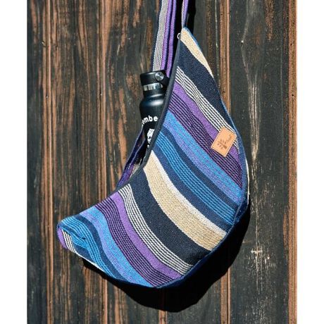 [型番:NQTP5122-2024]長年愛されるネパールの手織りボーダー生地を使った三日月形ショルダーバッグ。内ポケット付きで荷物の整理がしやすいのもポイント。ピタッと体のラインにフィットして、使いやすさ抜群。職人の息遣いと共に織りあがる、ざっくりとした生地の風合いをお楽しみください。