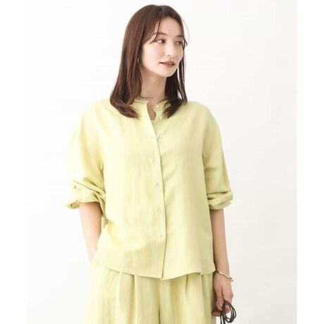 柔らかく肌心地の良い素材で着やすい。前あきで羽織る着こなしがおすすめ。リネン素材で清涼感があり、夏まで活躍します。