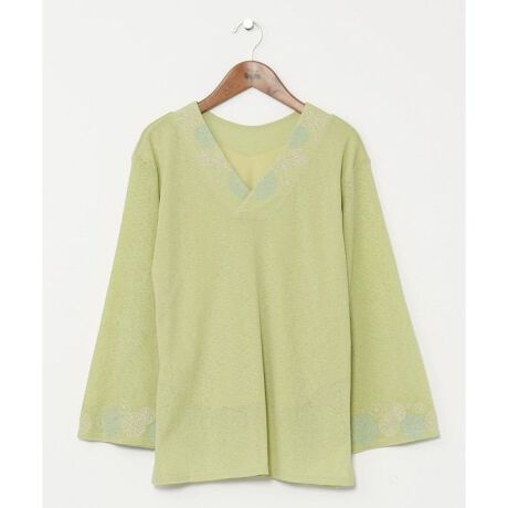 [型番:7CA-3102-2024]襟と袖口に菊と桜の刺しゅうが入ったデザインで、合わせやすい和の色合いのシンプルな中着(インナー)です。Vネックワンピースの中に着るとさり気ない和の演出を楽しめます。