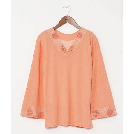 [型番:7CA-3102-2024]襟と袖口に菊と桜の刺しゅうが入ったデザインで、合わせやすい和の色合いのシンプルな中着(インナー)です。Vネックワンピースの中に着るとさり気ない和の演出を楽しめます。