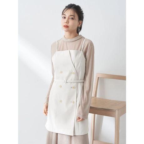 トレンチ風に仕上げた大人可愛いキャミミニワンピース。