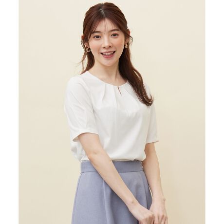 ■デザインany SiS定番のきちんと見えする優秀カットソーです。ジャケットのインナーにもぴったりです。胸元のタックデザインが華やかな印象に。襟部分センターに施したメタルホックが大人のこなれ感を演出。袖口にもタックを施し、よりデザイン性をアップグレードしました。