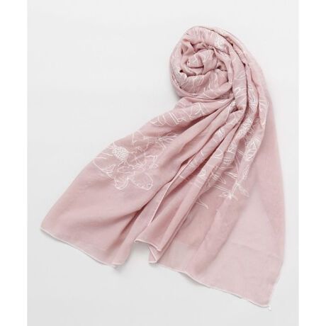 [型番:7CSP4101-2024]大柄な花の刺繍が目を惹くストール。大判サイズなので肩から掛けてショールとして使うこともでき、コーディネートのアクセントに最適。やや厚めの生地感で、肌寒い日や冷房対策にもおすすめです。