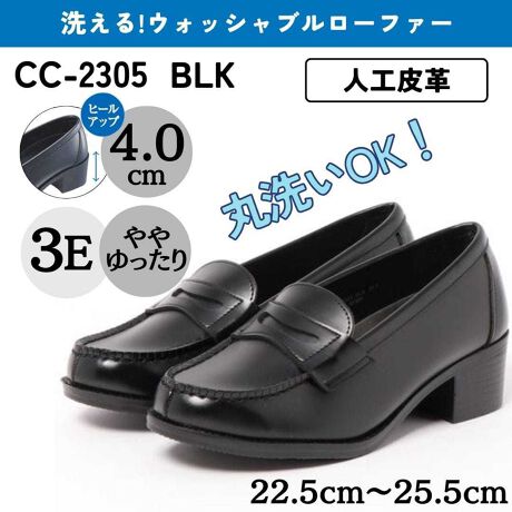ヒールアップタイプ「約4.0cmヒール」の洗えるローファー。