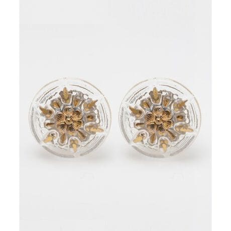 [型番:LSJZ0303-2024]色とりどりの繊細なデザインが愛らしいチェコ・ボヘミア地方のガラスボタン。現地の工房では昔ながらの手作業でひとつひとつ丁寧につくられています。そんな魅力あふれるガラスボタンを現地から直接仕入れ、素敵なピアスに仕立てました。レトロな雰囲気が印象的。ひとつひと