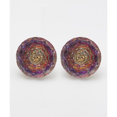 [型番:LSJZ0303-2024]色とりどりの繊細なデザインが愛らしいチェコ・ボヘミア地方のガラスボタン。現地の工房では昔ながらの手作業でひとつひとつ丁寧につくられています。そんな魅力あふれるガラスボタンを現地から直接仕入れ、素敵なピアスに仕立てました。レトロな雰囲気が印象的。ひとつひと