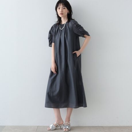 素材の軽さを生かし、繊細なギャザーワークを取り入れたワンピース。
