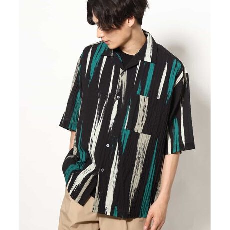 【速乾】ペイント柄オープンカラーシャツ 五分袖