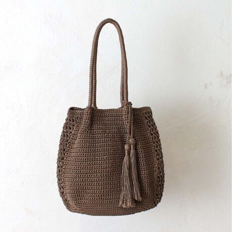 春夏のお出かけに、ヘビロテ間違いなし◎「コード編みタッセルトート」が新登場。【涼しげで抜け感のあるコード編み】前後は細編み、サイドは透かし編みで仕上げ、春夏コーデを引き立てるトートバッグ。落ち着きがあり、どんなスタイルにもマッチ。【軽やかでちょうどいいサイズ感】持ち手部分にタックをプラスした、ころんと丸みのあるフォルム。軽量&コンパクトで、サクッと持ち出せるのが嬉しい♪【マグネットボタンでワンタッチ開閉】開口部は片手で開閉できるマグネットボタン式。ボタンを閉じれば、中身のこぼれ落ちをガード。【A5サイズもペットボトルも】内側はA5サイズやペットボトル、長財布などがすっぽり。マチも程良く設け、お出かけに必要な荷物がひとまとめ。【サッと取り出せて迷子知らず】内側に1つポケットを配置。細々した物もバッグの中で探す手間を軽減。【肩掛けできてストレスフリー】ショルダーは肩に掛けやすい長さに設計。両手が空いて移動もラクラク。【アクセントになるタッセル付き】ハンドル部分のタッセルは、お好みで取り外し可能。バッグと同じカラーで、控えめながらデザインのワンポイントに。【流行に左右されず長く愛用♪】年代問わず使いやすいシンプルなデザイン。トレンドに流されず、毎年大活躍のアイテム。【ポケット仕様】内側:オープンポケット×1