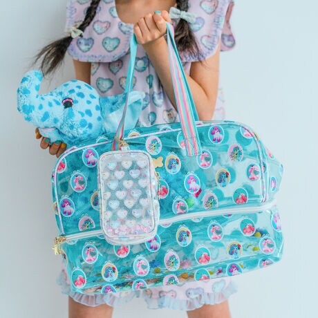 全面クリアのラメ入りPVC素材のボストンバッグ。