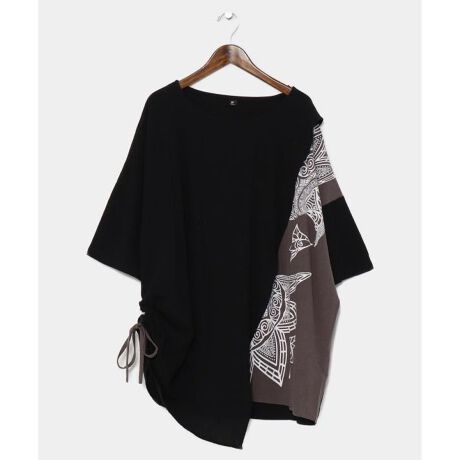 [型番:CAA-2113-2024]スペイン伝統の金銀細工、ダマスキナードにインスパイアされたメンズトップス。大胆なプリントやレイヤード風の切り替えなど、遊び心のあるデザインに心惹かれる。サイドの紐を調節して変形シルエットとしても楽しめる。肌触りのいい綿素材が魅力。