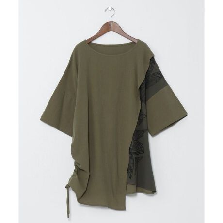 [型番:CAA-2113-2024]スペイン伝統の金銀細工、ダマスキナードにインスパイアされたメンズトップス。大胆なプリントやレイヤード風の切り替えなど、遊び心のあるデザインに心惹かれる。サイドの紐を調節して変形シルエットとしても楽しめる。肌触りのいい綿素材が魅力。
