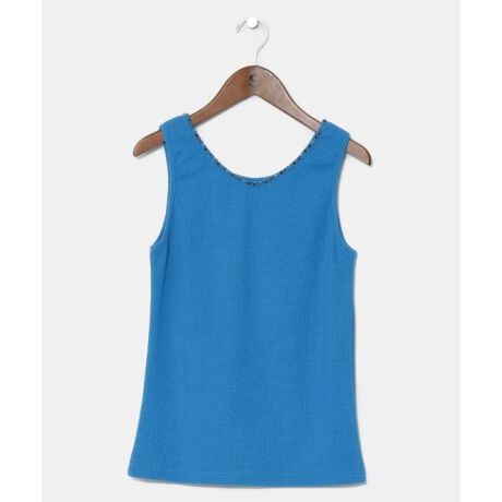 [型番:CCK-4101-2024]気分によってUネックとVネックが楽しめる2WAYスタイルのタンクトップ。体にフィットするリブ素材が気持ち良く、袖口も広く着脱もしやすいアイテム。光るビーズがアクセサリー感覚で楽しめる一枚。