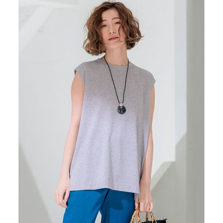 天竺編みで編み立てたクルーネックノースリーブプルオーバーです。オフボディにしているので、体のラインを拾わず着用していただけます。同素材のカーディガンと合わせていただくのもおすすめ。両脇にスリットが入っており、スッキリとお召しいただけます。カラーはいずれも合わせやすい3色展開。爽やかなホワイト(#001)、シックなブラック(#005)、ライトグレー(#003)の3色展開です。