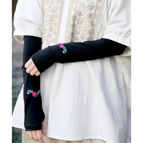 手首に個性的なワンポイント刺繍を施したシンプルなデザイン。