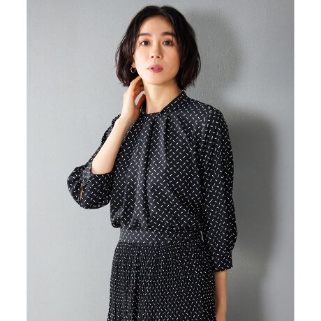 お顔周りが華やぐ8分袖ボウタイ見えブラウス■デザインボウタイのように見えるデザインブラウスです。人気シリーズのブラウスを、ジャケットのインナーにした時に襟元が綺麗に見えるようにアップデートし、春夏に向けて着やすい8分袖にしました。フロントの華やかなデザインは1枚で着るのはもちろん、ジャケットのインナーにも最適です。同素材のプリーツスカート(SKWMCM0318)とセットアップで着て頂けるので、汎用性の高い1枚となっています。オフィス、フォーマルのシーンで使いやすい落ち着いた無地2色とドットをアレンジした幾何柄の計3色展開です。■素材ポリエステルのツイル素材です。適度な肉感で、ハリ感とドレープ性があります。マットな質感とソフトな風合いで、ナチュラルなストレッチ性があり着心地の良い素材です。シワになりにくいのもポイントです。■同素材アイテムスカート(SKWMCM0318)ワンピース(OPWMCM0318)