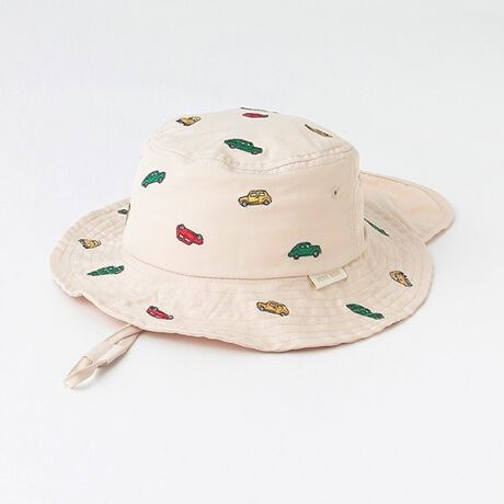 総柄の刺しゅうデザインが可愛らしいバケットハットです。