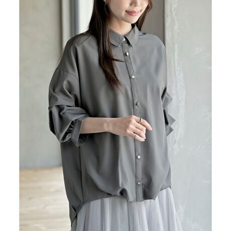 袖口にタックを施してボリュームをつけたブラウス。