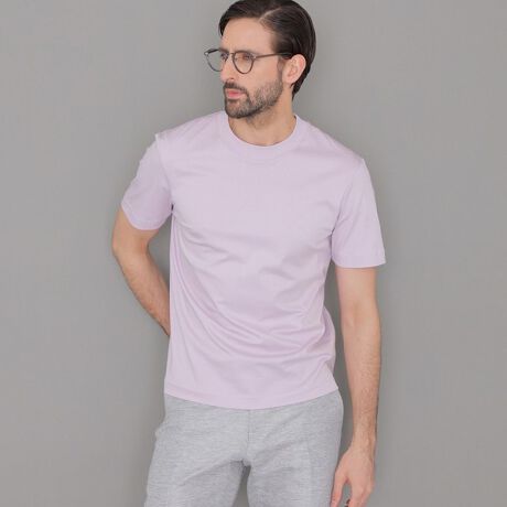 「FLEX JERSEY」や「BREASY JACKET」などのセットアップシリーズにベストなインナーとして企画開発されたドレスTシャツ。ジャケットに合わせ肩回り、首、身頃を立体的に設計しており、中に着た時に無駄な余りが出ずスッキリとご着用頂けます。フライス素材で衿巾を通常のTシャツより広く設定することで、首に綺麗に沿う立体的なシルエットを表現しました。