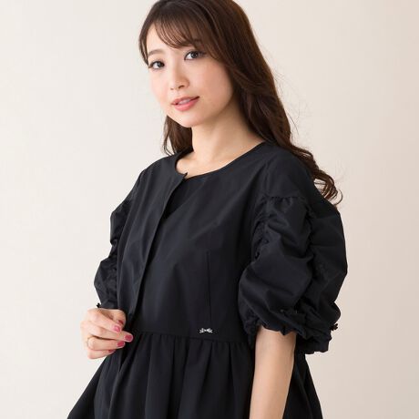 胸下からふんわり広がるペプラムシルエットに切替を入れているのでさりげなく体系を隠せ、可愛らしい印象に。