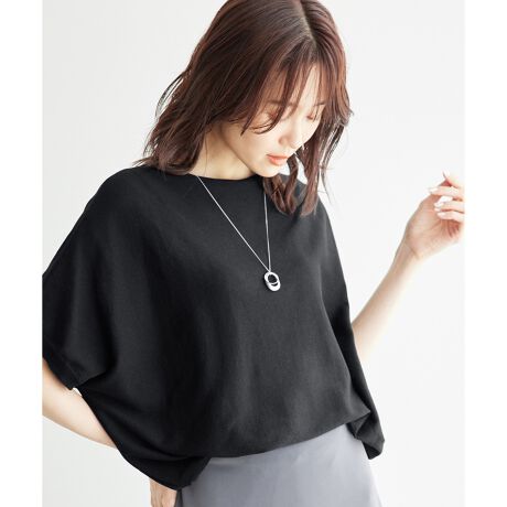 ・体を包み込む、モモンガシルエットの半袖ボートネックプルオーバー。