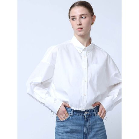 トレンドの着こなしが叶うショートシャツ。サイドをドロストで絞った丸みのある立体的フォルム筒の太いスリーブがどことなくモードな雰囲気に。ワイドシルエットパンツやハイウエストボトムとのスタイリングをお楽しみください。
