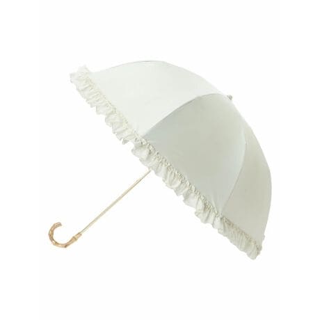 縁取りのフリルが愛らしいアクセントをプラスする二段折り傘。