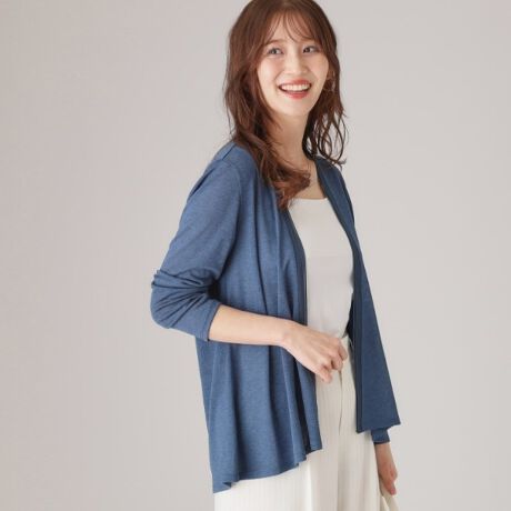 すっきりとした着丈なのでワンピースなどエレガントスタイルの羽織りとしてもおすすめです。