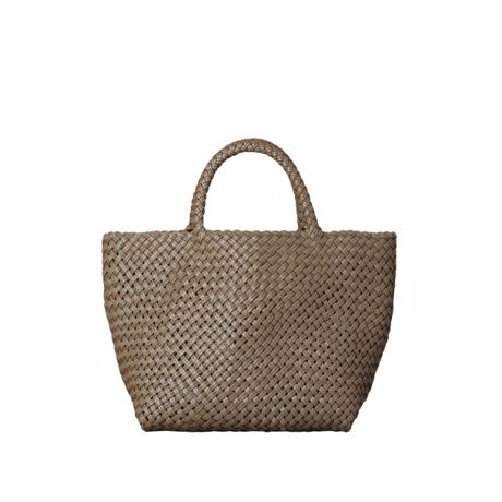 ※細いテープ状の革が編み込まれたバッグの為、表面に凹凸があり、摩擦の影響を受けやすい傾向があります。特にハンドル部分では手指が触れる為、汗の付着、手指用消毒剤やハンドクリーム、アルコールを含む化粧品等が付着し摩擦を継続的に受けることで色落ちや剥離につながる可能性がありますのでご注意ください。