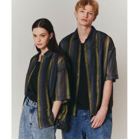 透け感のあるトレンド性の高い素材に、大人気のゆったりシルエットを合わせたデザインシャツ。