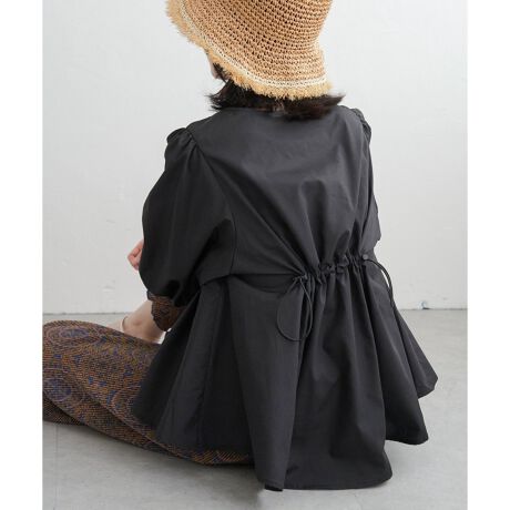 ウエストにドロストコードを入れた、ペプラム風なシルエットのブラウス。