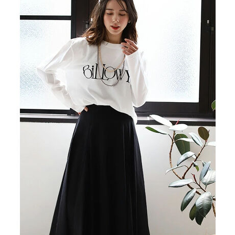 フロッキーロゴプリントミディ丈ロングTシャツ