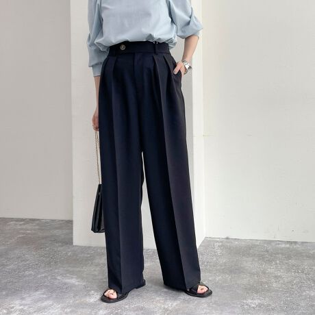 スタイルアップが叶う美シルエットな2タックスラックスパンツ