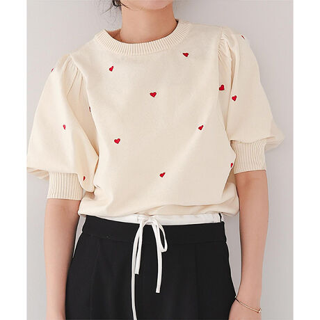 ハート柄ボリュームスリーブプルオーバー