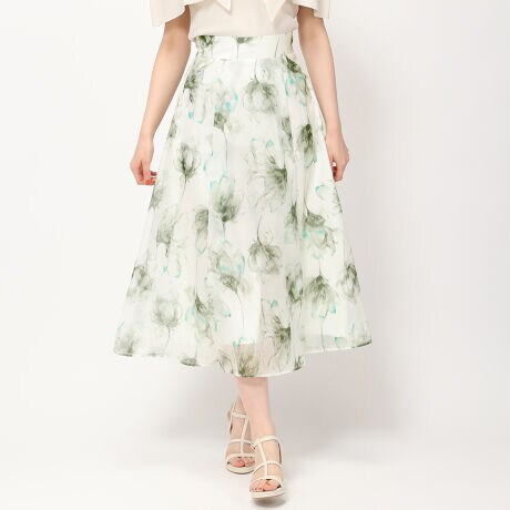 水彩グラデーションのようなフラワープリントで、フェミニンさを薫らせるスカート。ふんわりエアリーなフレアシルエットが、装いもドラマティックに演出してくれます。コーディネートに取り入れるだけでも、シーズンらしいスタイリングが楽しめるアイテムです。