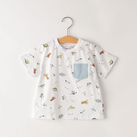 SHIPS KIDS:80〜90cm / 恐竜 テキスタイル 半袖 TEE