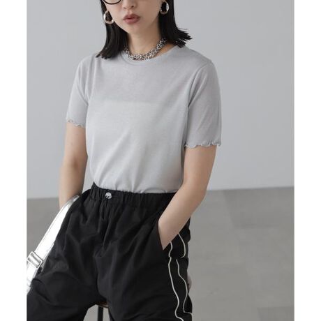 ラメシアークルーネック半袖カットソー
