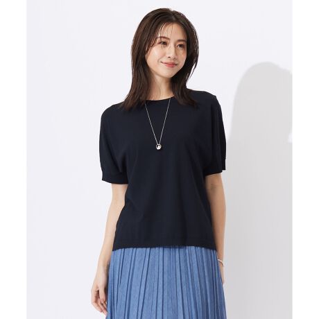 ミニマルなデザインで着回しやすい、大人のニット。腕まわりがすっきり見えるドルマンラインにこだわりました。サイドには軽やかな印象のスリット入りで、きれいめスタイルからカジュアルまで幅広くマッチします。パンツにもスカートにも合わせやすく、コーディネートに悩まない1枚です。カラーは、肌馴染みの良い柔らかなグレージュ(#003)、フェミニンなローズピンク(#012)、華やかで大人可愛いイエロー(#040)、爽やかな印象のダルブルー(#074)、ベーシックなネイビー(#075)の5色で展開します。同素材のカーディガンを羽織った、ワントーンコーデもおすすめ(#003 グレージュ、#040 イエロー、#074 ダルブルー、#075 ネイビーのみ)。洒落感を演出するボーダーニットもご用意しています。