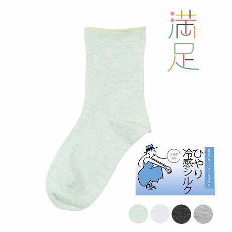 満足 : ひやり冷感シルク 平無地 ソックス クルー丈 レーヨンシルク素材(3145-41M)