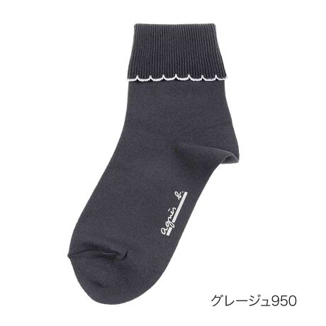 フレンチカジュアルを代表するブランドagnes b.(アニエスベー)のクルー丈ソックスです。リブ地に履き口折り返しでロゴの色と同じパイピングをすることで少しボリューム感とアクセントを加えたかわいいデザインです。