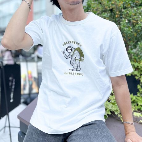 BACKPACKING CHALLENGE ナマケモノ プリントTシャツ