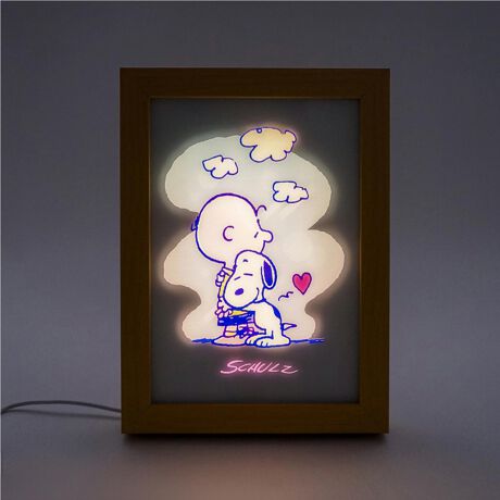 光をつけると、驚きが生まれるライト。キャラクターデザインの「サプライズピクチャー」が新登場。【光で立体的に浮かびあがるアート】アートの中に立体的な陰影が浮かびあがる、LEDフレーム。スイッチをONにすると、モノトーンの線画アートが奥行きのあるカラーのアートに変化。【明るさや色合いはスイッチで調整】フレーム本体には白光、暖色、自然光の3色切り替えが可能なLEDが内蔵。明度も10段階調整でき、全てスイッチで切り替えOK。【シーンに合わせて使い方自在】その日の気分やお部屋の暗さに応じて光量をチェンジ。寝室のベッドライトとしても活躍。【日中は空間に馴染むインテリア】スイッチOFFの状態では、モノトーンなアートフレーム。空間の雰囲気を邪魔せず、素敵にマッチ。【繰り返し使えるUSB電源式】本体に繋がっているUSBケーブルを使って、繰り返し使用OK。電池交換の手間も不要。【置き方を選べる2wayタイプ】スタンドとフィルムフックが付属。キャビネットなどに立てかけたり、壁掛けもお好みで。【サプライズギフトにもおすすめ】キャラクター好きな方へ、あっと驚くギフトを。あたたかい光によって生まれるアートが、自分だけの癒やし空間を演出♪