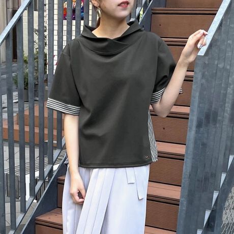 異素材切り替えスタンドプルオーバー
