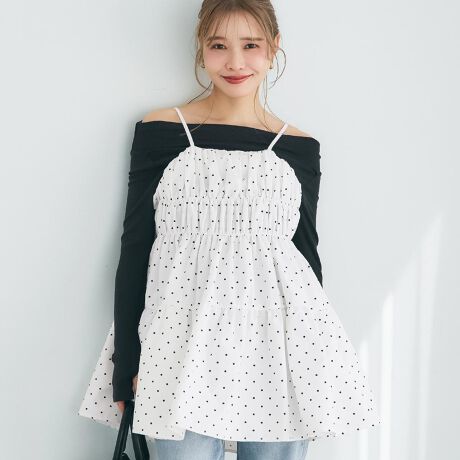 シンプルながらも、ドット柄がアクセントとなり、どんなコーディネートにも合わせやすいアイテム。