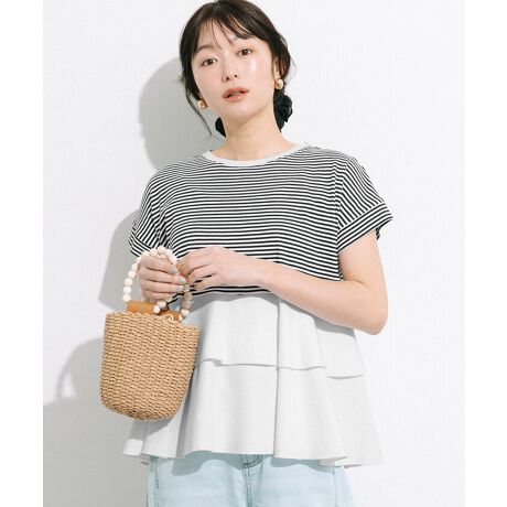 ・身頃はTシャツ素材、裾はブラウス素材の異素材ドッキング