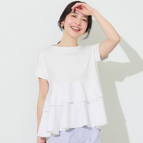 ・身頃はTシャツ素材、裾はブラウス素材の異素材ドッキング